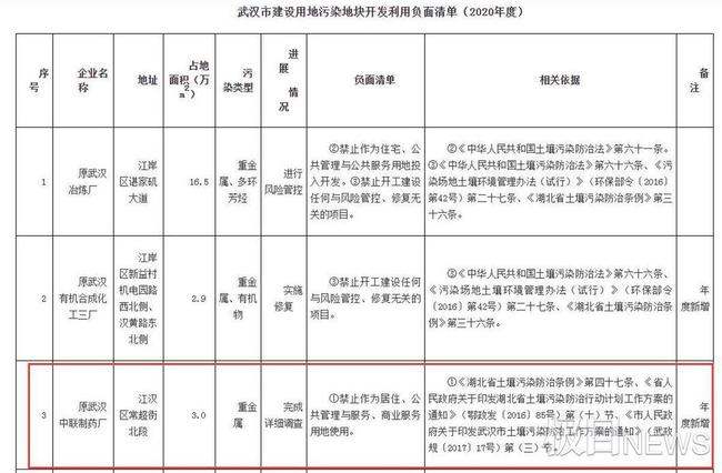 在武汉市江汉区常超街,原中联制药厂3万平米的废止厂区已经闲置多年,因重金属污染问题,此地块被武汉市生态环境局发布的2020年度《武汉市建设用地污染地开发利用负面清单》列为“负面清单”。