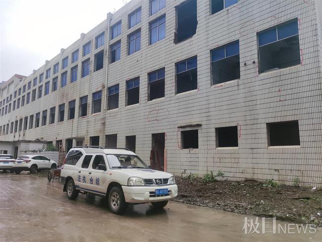 记者在正在施工的厂房外看到,一栋3层楼高的厂房一楼和二楼的部分窗户已被拆下,工人们正在进行清理。
